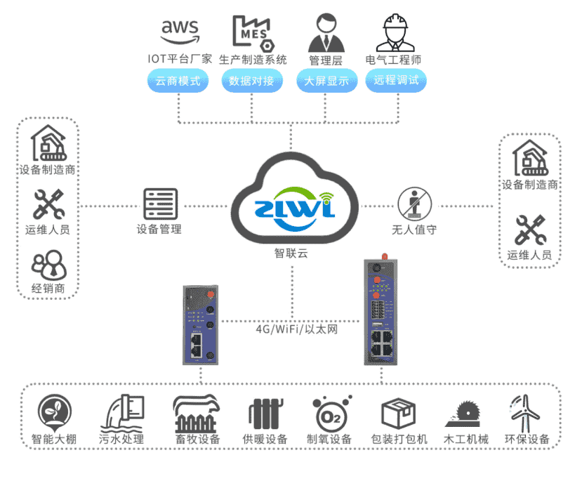 工业级物联网网关数据采集流程:顺利获得使用RS232/RS485串口、以太网口和IO接口,可以将设备与网关连接起来,进行终端设备的数据采集与实时通信。 物联网网关远程运维流程:工业级物联网关与现场工业设备连接,利用工业级物联网关的通信功能,工程师可以顺利获得云平台与现场设备建立数据通道,即实现工业设备的远程维护、远程调试和程序下载,实现多样化的远程控制功能。