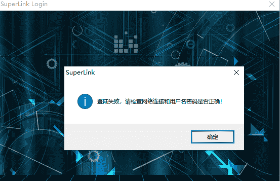 Superlink工具登录失败,不断提示请检查网络连接或账号密码信息,出现这个情况时,请分别确认如下问题: 1.第一时间确认电脑端可以正常访问互联网; 2.严格确认账号或密码信息是否完全正确(具体账号信息请查看远程网关背面标签),包括大小写信息及是否有空格出现。