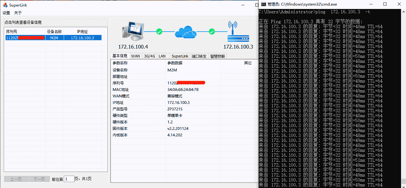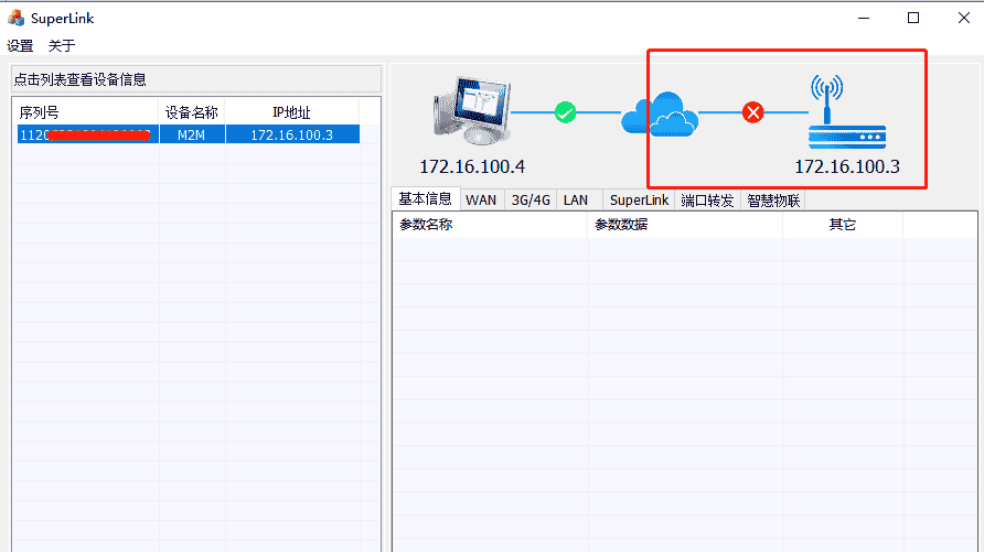 远程网关插卡后,4G拨号联网都正常,但是电脑端登录Superlink工具后显示网关侧不断不在线,无法远程访问用户设备,如下图: